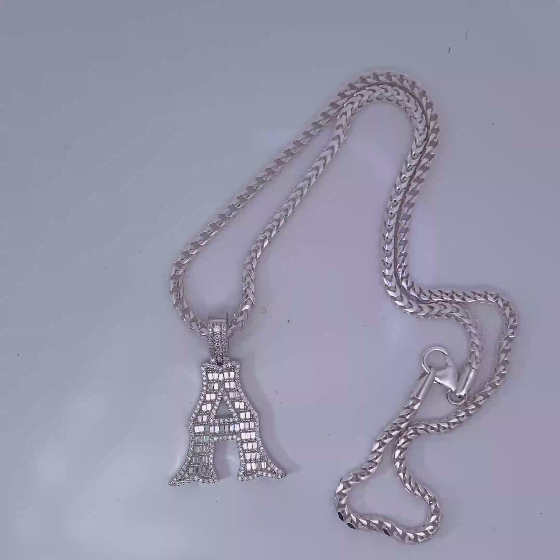 925 Silver Franco chain combo with Moissanite Letter A Pendant