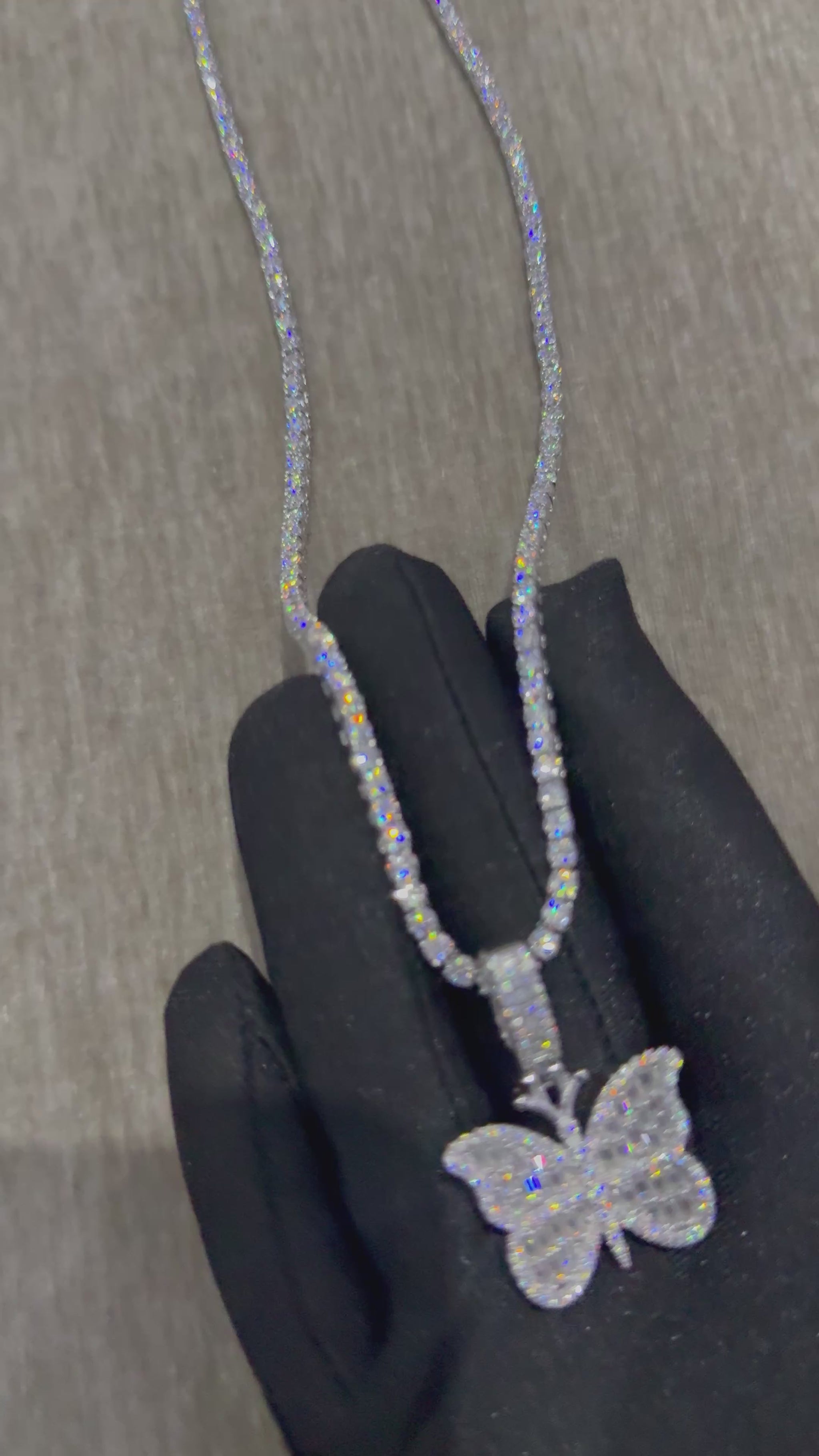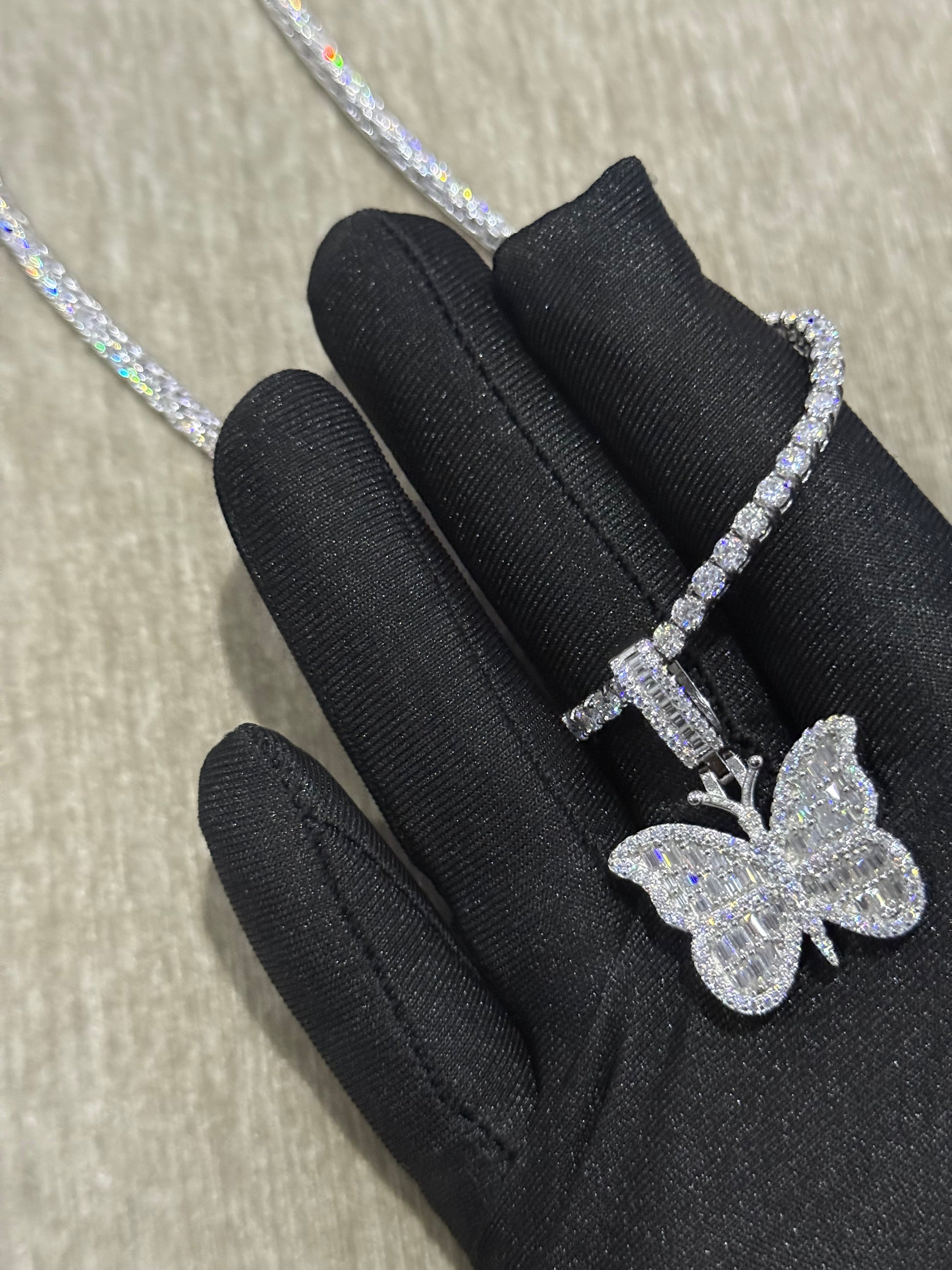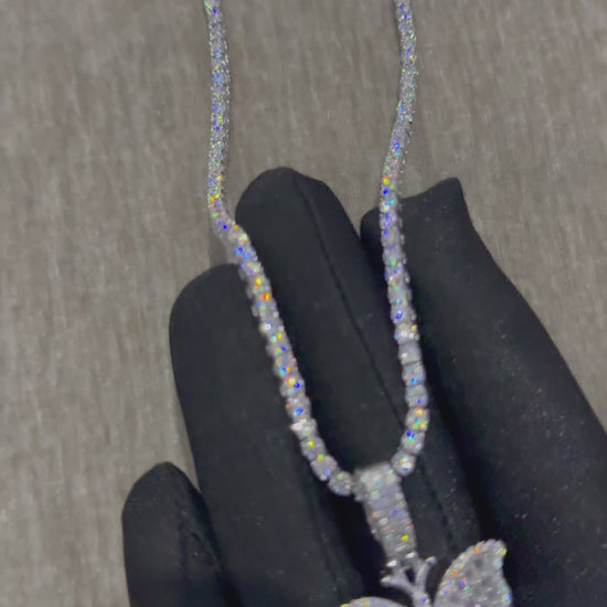 100 % Authentic 16 inch Moissanite tennis chain with Moissanite butterfly pendant combo 925 silver.