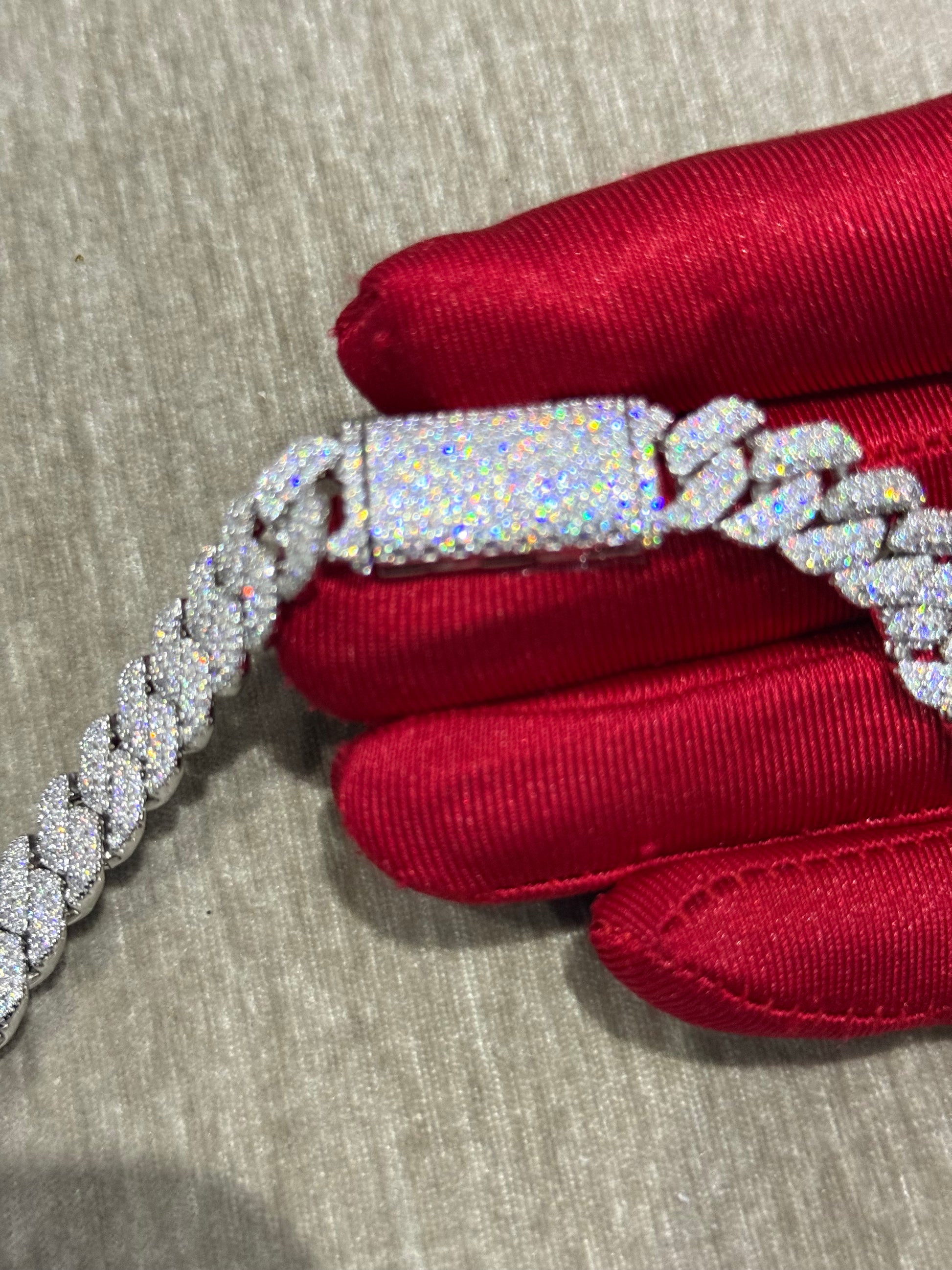 10mm Moissanite Tight link chain 20 inch VVS1 top tier stone quality 925 silver Moissanite link chain.